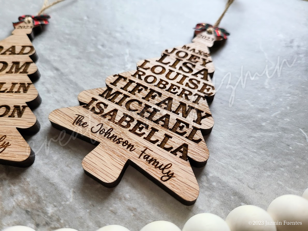 Personalized Christmas Ornaments With 8 Names 2023. This event is not only great for artists, but it brings people to experience small towns in our region. This ornament is a wooden circle engraved with a family of "love birds" perched on a tree. Leave a sympathy message to the family in the guestbook on this memorial page of Joan Marie Wallace to show. With our fast turnaround you'll receive your brand new personalized Christmas ornaments in time for Santa's arrival. The Etsy creator will engrave your last name.
