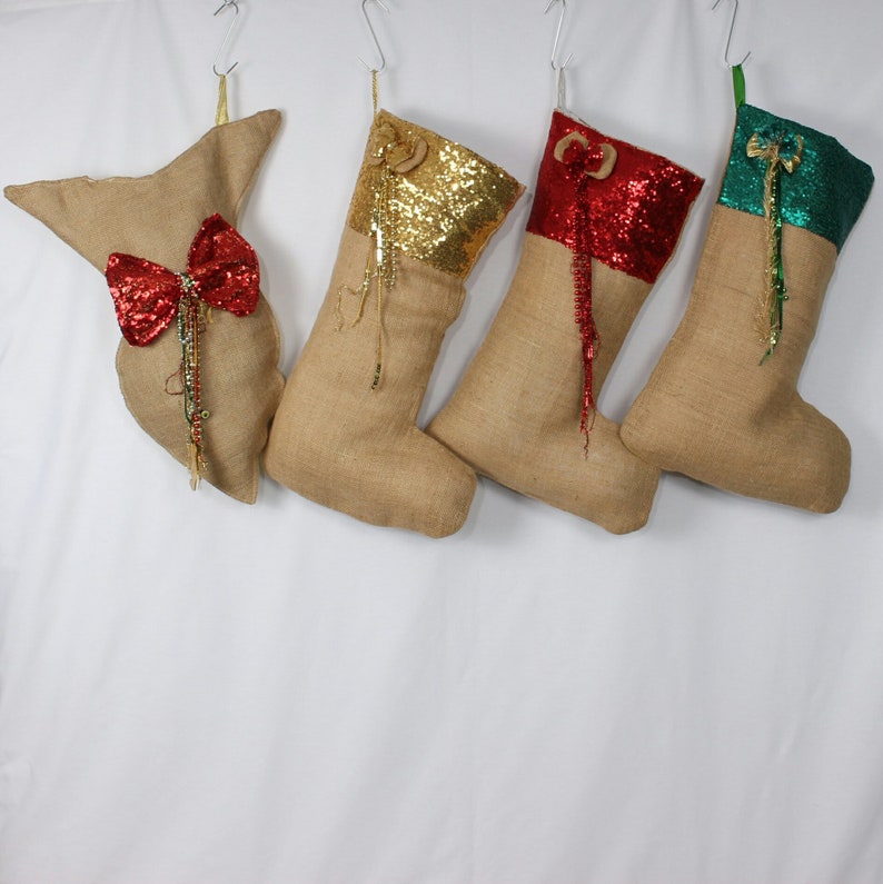 They are crafted from a plush polyester blend and have the classic red boot with the white trim – and a red loop for hanging, of course..